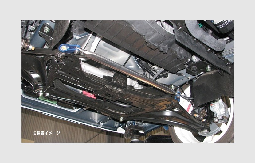 コーナーリング時にかかる横Gに対する車輌のゆがみなどを、ガッチリ車体下部からサポート。