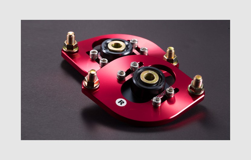 プレートとピロボディーをスライドして、キャンバー角の調整を可能にします。車高の変化やサスペンションの交換に合わせ、最適なセッティングをお楽しみください。